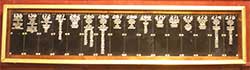 Section of the mechanical locking tray from Newport (Monmouthshire) East Box of 1927 The miniature-lever based frames with electric operation of ground equipment installed at Newport pre-date the Bristol installation of 1935 but featured route levers where, ideally, pulling one lever set up the entire route, and all that remained was to pull the signal lever. The frames, built by Siemens, used the Insell-Ferrera route-working principle, Mr LM Ferrera being the GWR’s assistant signal engineer. This form of route setting was unique in Britain, but gave reliable service for almost forty years. |